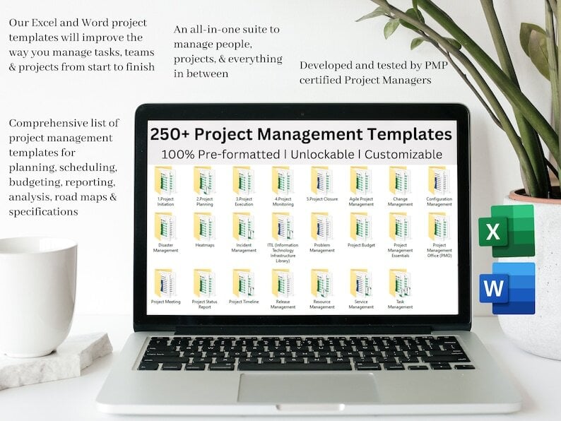 250+ Project Management Templates: Project Initiation ǀ Project Planning ǀ Project Execution ǀ Project Monitoring ǀ Project Closure ǀ Agile Project Management ǀ Task Management ǀ Change Management ǀ Incident Management ǀ Resource Management ǀ Project Status Report ǀ Gantt Chart ǀ Kanban Board ǀ Heatmap ǀ Dashboard